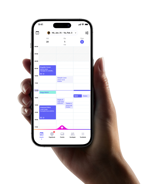 Minden funkció egy koppintásra – időpontok, vendégek, naptár, foglalások.
