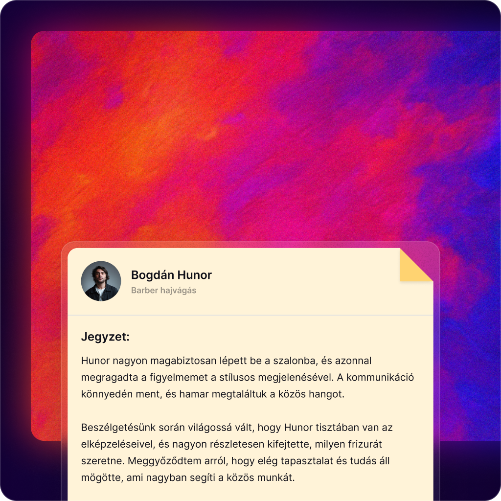 Egyéni megjegyzések minden vendégnél — csak neked, csak ott, ahol kell.